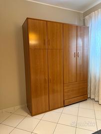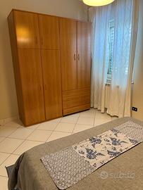 Camera da letto singola con lettino, rete, materasso, armadio grande, comodino, cassettiera, specchio e sedia