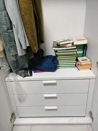 Armadio guardaroba altezza 260cm, larghezza 270cm, profondità 60cm. Letto una piazza e mezzo con contenitore, un comodino 2 cassetti