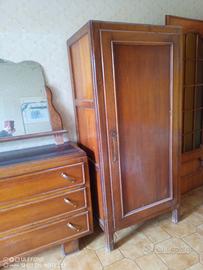 camera da letto d'epoca, composta da testiera e pediera per letto singolo, comò con specchio, mobile ad una anta. ben conservato.