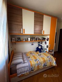 La camera è composta da 2 letti più un terzo., viene venduta completa di armadio..in ottime condizioni, fatta fare da un mobilificio. H 2.60 L 2,95 Letto da 90* 200. Si regalano anche parure di piumone/trapunta e copriletto della trudi. Disponibile da subito.