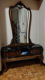Vendo camera da letto stile Chippendale degli anni 50 composta da: letto matrimoniale, due comodini, armadio a 5 ante, comò con specchiera e toilette con specchiera e sgabello. La camera si trova già smontata in un magazzino. Ritiro a carico dell’acquirente.