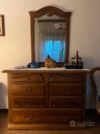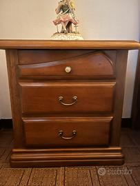 Vendo camera da letto anni 80 in noce massiccio composta da armadio 6 ante, 2 comodini, letto matrimoniale, comò e poltoncina.
