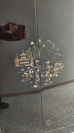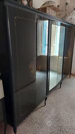 Camera da letto matrimoniale in legno stile giapponese anni 60 composta da armadio a tre ante, Cassettiera con specchio e struttura per letto matrimoniale . Misure armadio: lunghezza 2,93 mt, altezza 1,87 mt profondità 59 cm. Cassettiera: lunghezza 1,68 mt, altezza 77 cm, profondità 48 cm. Prezzo 170€. Chi interessato dovrà provvedere al ritiro. Contatti: 340400 7520