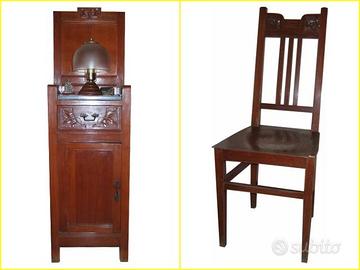 Camera da letto matrimoniale antiquariato stile Liberty composta da: 2 letti singoli in massello di ciliegio cm 185 x 198 H 161 armadio in massello di faggio scomponibile in 3 pezzi cm (53+ 85.5+53) x 50 H 230 comò in massello di faggio cm 109 x 49 H 194 2 comodini in massello di faggio cm 38.5 x 29.5 H 130 2 sedie in massello di faggio cm 38 x 38 H 98