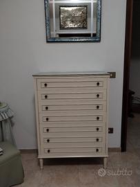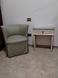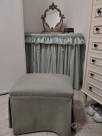 Vendo camera da letto stile retrò composta da: armadio 2 livelli a 5 ante con cassettiera interna,2 comodini con cassetto,settimino,2 poltrone,toletta con sgabello.