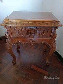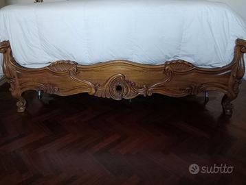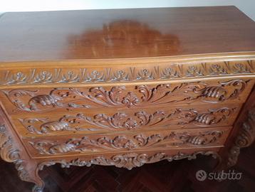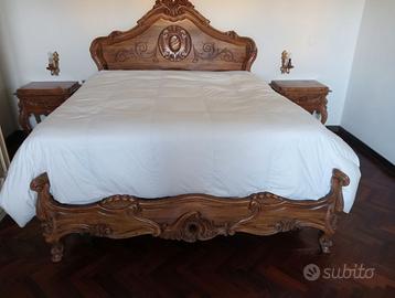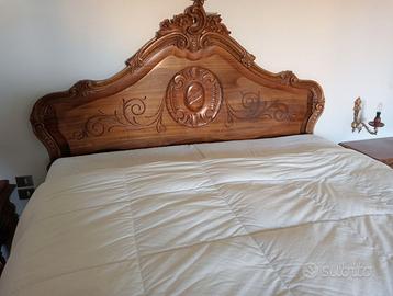 Vendo camera da letto in stile rinascimentale toscano in legno di noce massello, i mobili sono stati prodotti a Cascina -Pisa da artigiani famosi per il loro stile unico. La camera si compone di: letto matrimoniale - 1 como' a tre cassetti, 2 comodini. Il como' ed i comodini presentano decorazioni finemente intagliate cosi' come la testiera e la piediera del letto. Lo stato di conservazione dei mobili e' molto buona, si vende in blocco non a pezzi, la spedizione e' a carico dell'acquirente. I mobili sono visionabili a San Miniato provincia di Pisa.