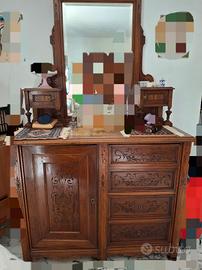 Camera da letto in stile umbertino di fine '800, inizio '900 ben conservata. E' composta da letto king size, due comodini, armadio a due ante con specchi, cassetti e ribalta, cassettone e toilette.