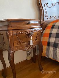 Vendo camera da letto completa composta da: •2 comodini •letto (senza rete e materasso) •comò grande con specchio Sono mobili in legno massello, con intagli fatti a mano, in stile veneziano classico. Hanno qualche anno ma sono tenuti bene e fanno ancora la loro figura. Li vendo perché sto cambiando arredamento. Presentano solo normali segni del tempo Ideali se ti piace lo stile classico/antico/ vintage e cerchi qualcosa di solido e non roba moderna “leggera”. Ritiro a mano. Scrivimi pure per info