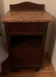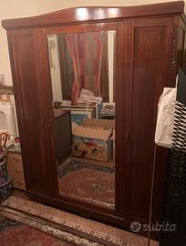 Legno massiccio lavorato con marmi rossi con ammonita e specchi lavorati. Compreso letto, comò, 2 comodini e armadio, tutti mobili originali d’epoca e bellissimi. È veramente bellissima ma dobbiamo liberare casa