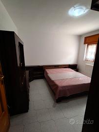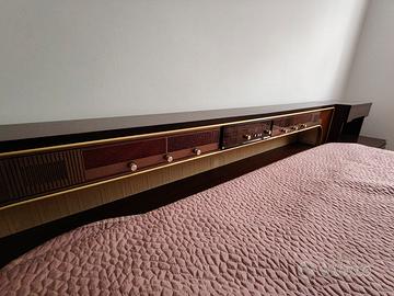 intera camera da letto in legno in ottimo stato anni 60,con armadio 4 stagioni e ante a specchio, materasso e testata letto con radio integrata e comodini annessi ,dotata di consolle con specchio e lampadine.