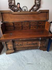 Mobili camera da letto matrimoniale senza armadio in stile antico, tutto di prima fattura e ben tenuta. 2 comodini, struttura letto in ferro battuto compresa di lampadario in ferro battuto e comò che diventa un bellissimo scrittoio. Comprende anche una poltrona sempre in stile antico. Per info contattare Luigi.