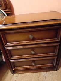 Vendo camera da letto in stile antico, robusta e capiente così composta: armadione, como', 2 comodini e spalliera del letto.