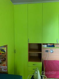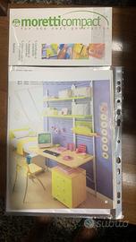 Camera da letto Moretti Compact Armadio angolare con due letti singoli (1 piazza e 1 piazza e mezza) dotati di vano contenitore. Scrivania angolare.