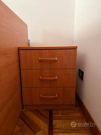 Camera da letto completa di armadio, comodino e letto singolo che può diventare doppio estraendo il secondo letto da sotto (come in foto). Possibilità di avere ulteriormente mobile angolare e mensole pre trasformarla in camera a ponte, come da disegno in ultima foto.