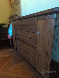 Camera da letto composta da letto matrimoniale a cassettone, armadione sei ante, due comodini e comò. I mobili sono in legno non truciolato in condizioni pari al nuovo. Smontaggio e trasporto a cura dell'acquirente.