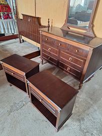Camera da letto tradizionale con comò e specchiera e comodini. Segni di usura del tempo ma ben tenuta. Misura comò 134x51x92 di altezza. Misura comodini 59x33x60 di altezza. La specchiera è alta 102cm. Ritiro presso proprietario.