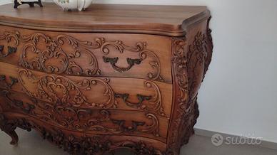 CAMERA DA LETTO DI GRANDE VALORE- OTTIMO PREZZO -IN LEGNO MASSELLO NOCE SIBERIANO SCOLPITA A MANO STLE LIBERTY/BAROCCO COMPOSTA DA LETTO CON 2 COMODINI,CASSETTIERA CON SPECCHIO,DUE POLTRONE. SI VENDONO ANCHE SEPARATAMENTE
