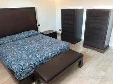 Camera da letto in stile etnico in rovere colore wengè con rifiniture in pelle, composta da due comodini , due settimini, giro letto più testata e panca. Ottimo stato, rete e materasso escluso. Prezzo trattabile. Ritiro da parte dell’acquirente.