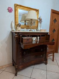 Camera da letto così composta: letto in ottone, comò e comodini in legno, specchio con finiture dorate, bacino antico con specchio incluso, armadio a tre ante con specchio grande interno, lampadario in ottone con candele