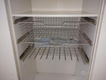 Armadio a 4 ante scorrevoli completamente attrezzato altezza 2,36 larghezza 3 metri letto matrimoniale con 4 cassetti contenitori ,2 comodini con due cassetti,bianco Ikea pax con materasso ,camera usata saltuarialmente