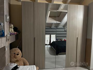 letto matrimoniale, armadio a 6 ante, e sue cassettini