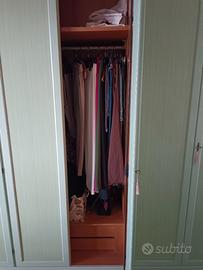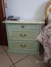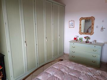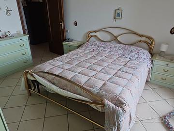 camera da letto verde, composta da armadio a 3 ante, cassettiera, due comodini, letto con testata in ottone- ritiro a carico acquirente