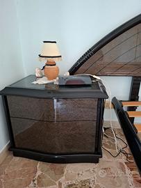 Causa trasloco vendo camera da letto in legno laccata nera con marmo quarzato composta da letto, comodini e comò. Vetrinetta e armadio da cameretta.