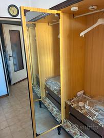 Come da oggetto: letto con reti, comodini, cassettiera con specchio, armadio a sei ante. Ante centrali con specchi interni e cassettiera. Tutto in ottime condizioni. Smontaggio e ritiro a cura dell’acquirente.