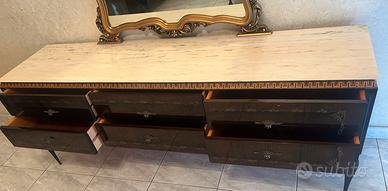 Vendesi camera da letto matrimoniale completa in stile vintage originale anni '50/'60. Mobili di ottima fattura, eleganti e molto solidi, arricchiti da piani in marmo chiaro perfettamente integri.