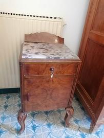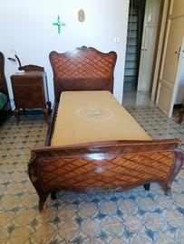 Vendesi camera da letto inizi 900, comprensiva di comó con ripiano in marmo e specchiera (117x50 cm h 95 cm), coppia di comodini con ripiano in marmo, cassetto ed anta (40x45 cm, h 75 cm), coppia di letti singoli con rete a doghe in legno nuove