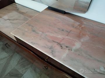 Composta da letto matrimoniale, due comodini, armadio a 5 ante e comò con specchio. Piani in marmo rosa.