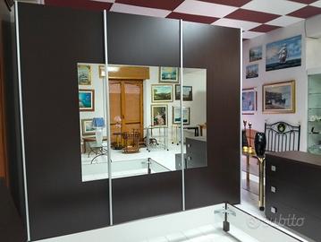 Camera da letto moderna in wengè completa: letto, 2 comodini, comó, e armadio scorrevole