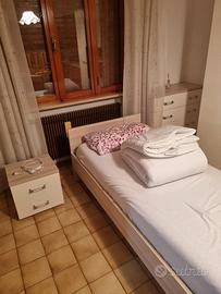 Vendo camera da lettto, praticamente nuova, completa di armadio a muro, comodino, armadio a giorno e letto singolo .