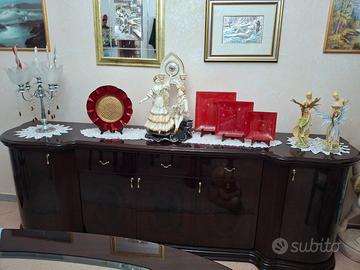Vendo per inutilizzo camera da pranzo nuovissima senza segli di usura stile Inglese lucido completo di tavolo in cristallo, sedie,buffet e armadio.
