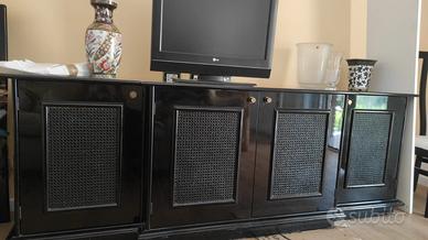 Vendo camera da pranzo come nuova: tavolo tondo in cristallo, 4 sedie, mobile lungo laccato nero, angoliera vetrinetta, mobili per TV e divano letto in tessuto chiaro. Vendesi anche in pezzi singolarmente. Cell . 3480637642