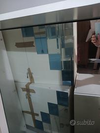 camera da pranzo con sparecchia tavolo,vetrina,tavolo in cristallo,e sedia