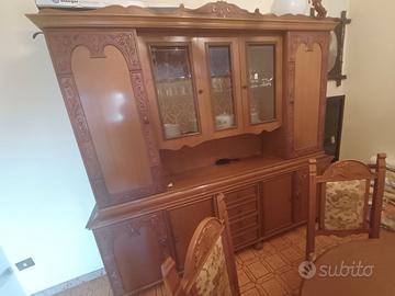 Vendo Camera da pranzo si vero legno tavolo allungabile 6 sedie mobile con vetrinetta