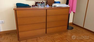 Camera da letto in legno di noce, letto cm 170 con due comodini, cassettiera di 8 cassetti e armadio 6 ante molto alto (2.90 ca) adatto quindi per case con soffitti di 3 metri. Perfetta, senza segni. Ritiro da organizzare da parte dell'acquirente, da concordare