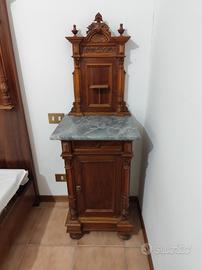 Vendo intera camera di antiquariato fine 800 inizio 900 in noce. Costituita da letto (che può essere matrimoniale o 2 letti singoli) cassapanca, armadio e 2 comodini. Occasionissima; difficile trovare una completa camera di antiquariato in queste condizioni e a questo prezzo. Attualmente è smontata per esigenze di spazio.