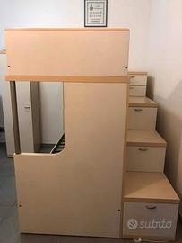 - letto a castello con doghe ,scala a cassetti ,comodino e cassettoni su ruote