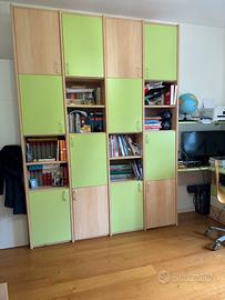 Camera doppia competa con due letti singoli, comodino, cassettone, armadio due ante (260x90cm), libreria (260x190cm), scrivania con cassetti e sedia, varie mensole. Prodotti in ottime condizioni da falegnameria di qualità (no mondo convenienza/ikea).