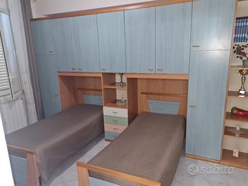 Come da titolo vendo questa camera doppia con armadio a ponte costruita e montata da Scavolini a Castelvetrano della linea "Scavolini Kids". Ha 10 anni di vita e parliamo di legno massello, no truciolato. All'interno presenta qualche segno di usura, ma nulla di importante. Dogle in legno con materassi comprati nuovi e mai utilizzati. Per qualsiasi altra foto resto a disposizione. Prezzo poco trattabile.