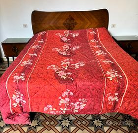 Letto matrimoniale con testata impiallacciata a disegno geometrico stile Art Déco tardo / anni ’40 comodini abbinati con piano in vetro Vendesi anche separatamente