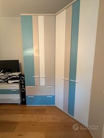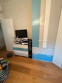 vendo camera ragazzo mod city line acquistata 2018 tenuta in modo maniacale. Letto una piazza e mezza con contenitore, comodino, cabina armadio con luce e pensili, armadio laterale due ante e due cassettoni, libreria incorporata, ulteriore armadio un anta, scrivania, cassettiera tre cassetti e cassettiera per scrivania. Vendo per trasloco immediato.