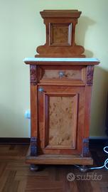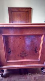 Camera in ciliegio composta da due letti dim. 205x102x137h cm, un comodino con ripiano in marmo dim. 40x50x125h cm ed un mobile toeletta con ripiano in marmo dim. 79x56x90h cm. Tutto in perfette condizioni, già restaurato, non necessita di ulteriore restauro.