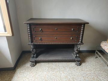 Vendesi camera da letto completa in legno massiccio in stile barocco spagnolo, caratterizzata da piedi a zampa di leone, fini intagli e decorazioni.