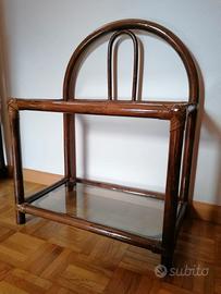 Camera in rattan in ottime condizioni composta da 2 testiere per letti singoli, un comodino con superficie in vetro, due librerie, una scrivania con sedia.
