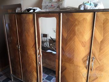 Vendo camera da letto matrimoniale composta da: 2 comodini, 1 armadio a cinque ante, testiera letto e consolle trucco con specchiera. I pezzi possono essere venduti anche singolarmente, di seguito i prezzi dei singoli: 2 comodini €160,00; armadio €400,00; testiera €150,00; consolle con specchiera €250,00.