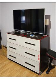 CAMERA DA LETTO modello “ROMA”, Mondo Convenienza, a ponte 6 ante con LETTO contenitore modello “BIG TOWN” completo di rete, senza materasso, COMO’ 3 cassetti. Il tutto come da fotografie. Il mobilio è smontato, imballato e posto in magazzino, completo di ferramenta per il montaggio ed istruzioni. Misure come da campitura in foto
