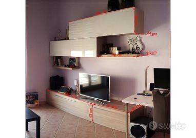 STUDIO/TINELLO componibile, Mondo Convenienza, modello “SKEMA”, apertura ante a vasistas, Il mobilio è smontato, imballato e posto in magazzino come da fotografia, completo di ferramenta per il montaggio ed istruzioni. Misure come da campitura in foto